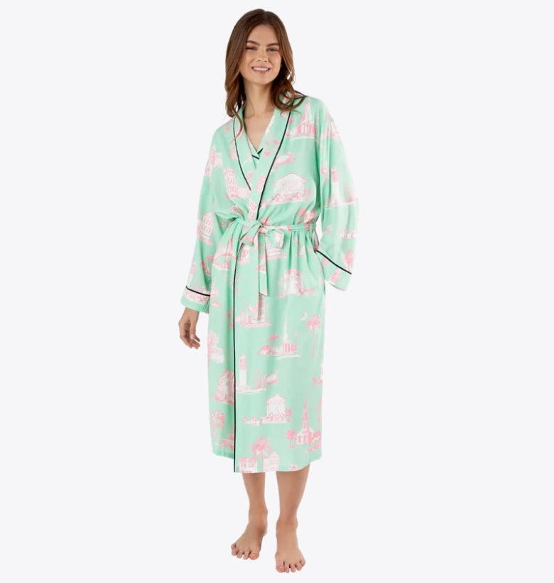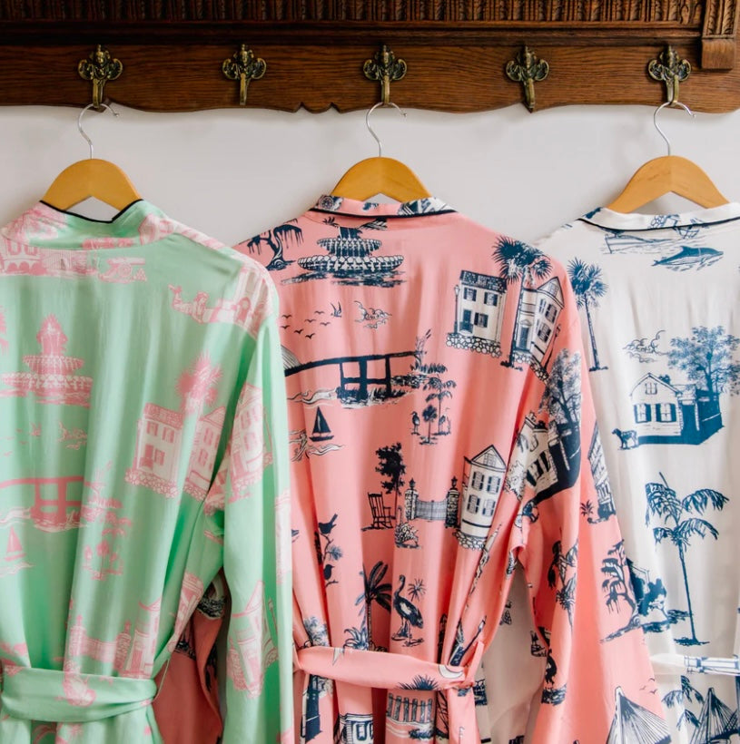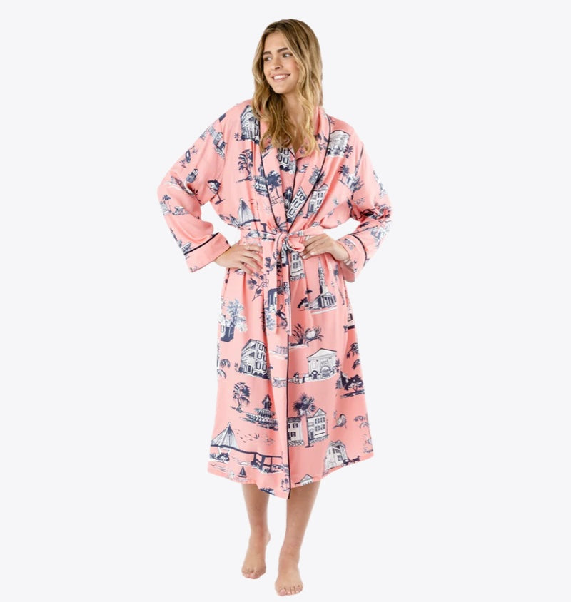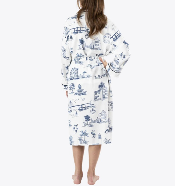 Enjoy a tour of the Holy City thru this beautiful hand illustrated Charleston Toile robe...symbols of tradition,hospitality and Charleston landmarks make this the perfect robe to keep for yourself or gift to any Charleston lover in your life.